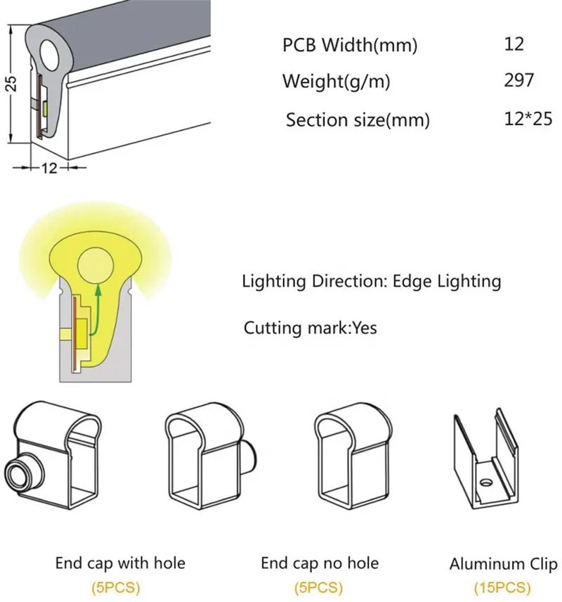 Embedded Flexible Neon Silicone Tube LED Rope Lamp Waterproof Diffuser Channel WS2811 WS2812B Outdoor Linear Ribbon Strip Lights