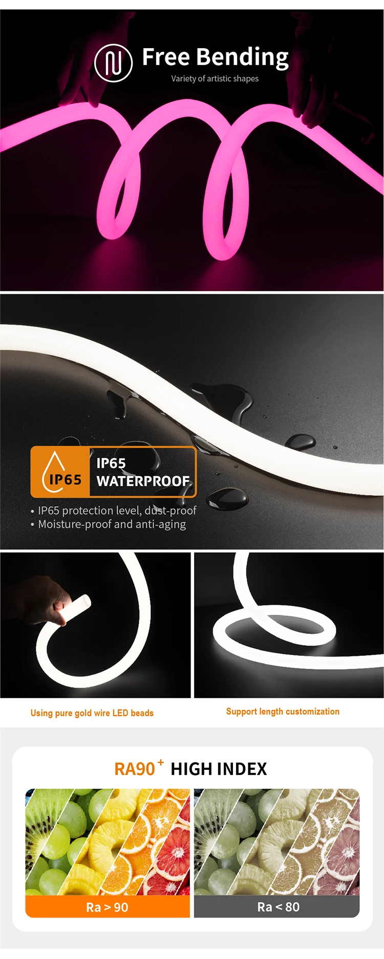 • Dynamic Color Control: RGBW variant achieves 95% NTSC color coverage with seamless white-channel integration for natural tonal withstands -40°C to +80°C operational extremes while maintaining pliability.