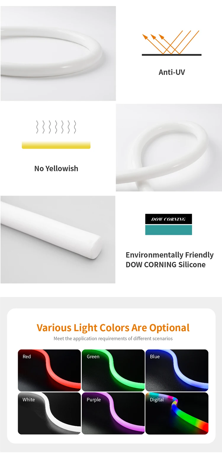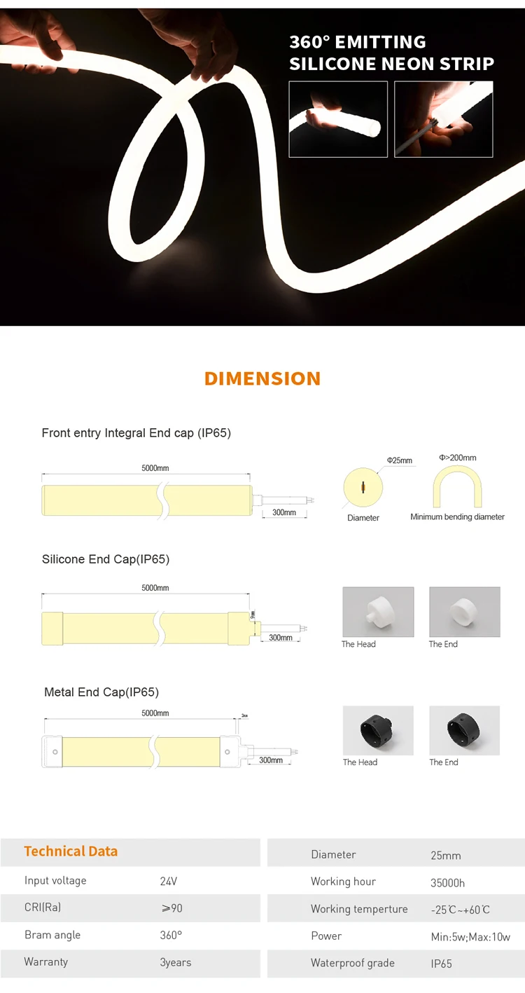 The Hot Selling 360 Uniform Luminescence LED Neon Strip redefines flexible lighting technology. Engineered with a precision 25mm silicone outer diameter, this DC24V-powered system delivers unparalleled 360° omni-directional illumination. Ideal for architectural accents, commercial signage, and creative installations, it combines IP65-rated durability with revolutionary bend flexibility.
