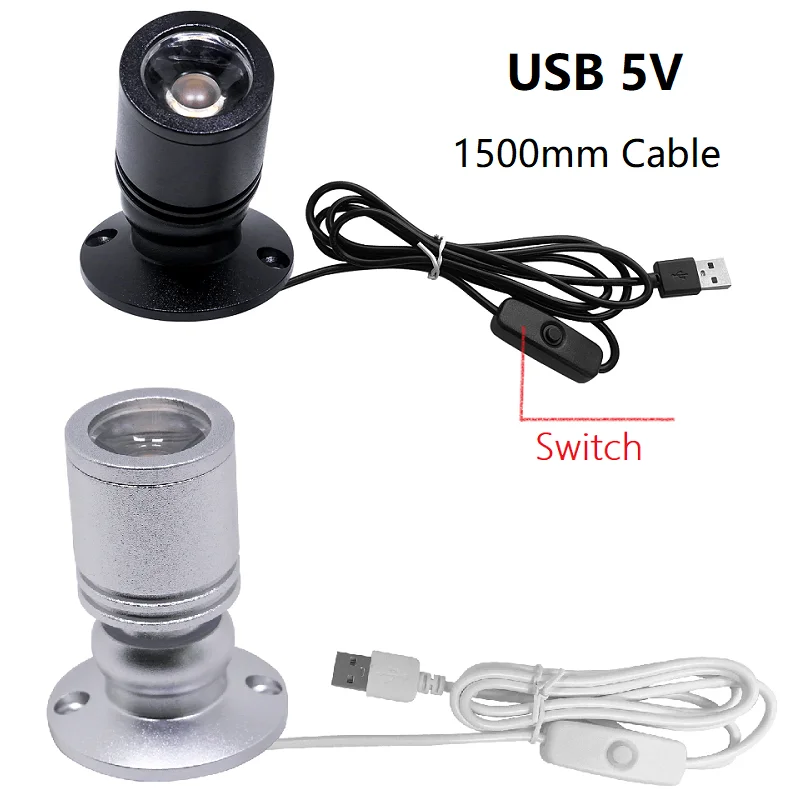 Mini LED spotlight 1W/3W jewelry display DC5V with switch USB interface shop cabinet interior toy decoration desktop focus